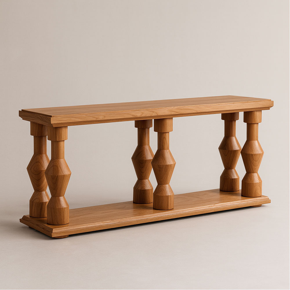 This luxury console table is a stunning centerpiece, blending contemporary design with the warmth of natural materials. Its clean lines and sculptural base create a sophisticated silhouette that complements a variety of interior styles, from modern to rustic. Designed for both form and function, this luxury console table makes an inviting space for serving or display.