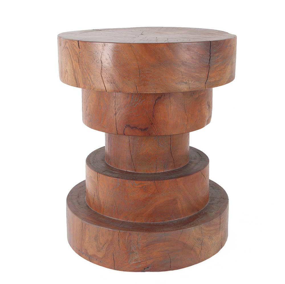 The Sandoval Stool Table is a beautifully balanced and refined piece, serving as both a functional stool and an artistic statement. Handcrafted by artisans who turn solid Margosa wood—a dense tropical hardwood from India—on a lathe, each stool is meticulously shaped and sanded by hand. The natural drying process in a solar kiln encourages organic cracks and separations, enhancing its unique character. Finished according to your specifications, this versatile piece adds a touch of natural elegance to any interior space.